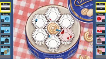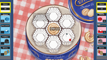 What's this? This isn't supposed to be. There's never cookies inside these cans, these strange places. These are sewing kits. Always have been. There's one? Well now I want it. The red button gang wants it too? This is war!! Win the Recookiesta and claim the last danish cookie in the universe! I bet those are tasty! Wouldn't know, never found one. Units: